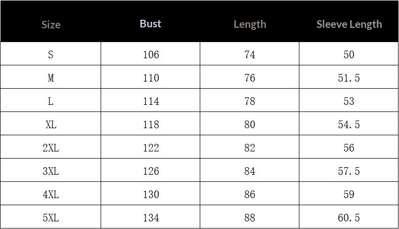 Sizes: S, M, L, XL, XXL, 3XL, 4XL, 5XL